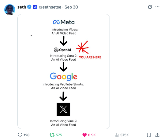 Sora 2ās launch has divided the tech industry. As many have pointed out, last week, Sam said he needed the compute so we didnāt have to choose between curing cancer or giving everyone free education. But now the timeline is worried the real choice might be between curing cancer and free education ooor selling ads on top of AI slop factories.