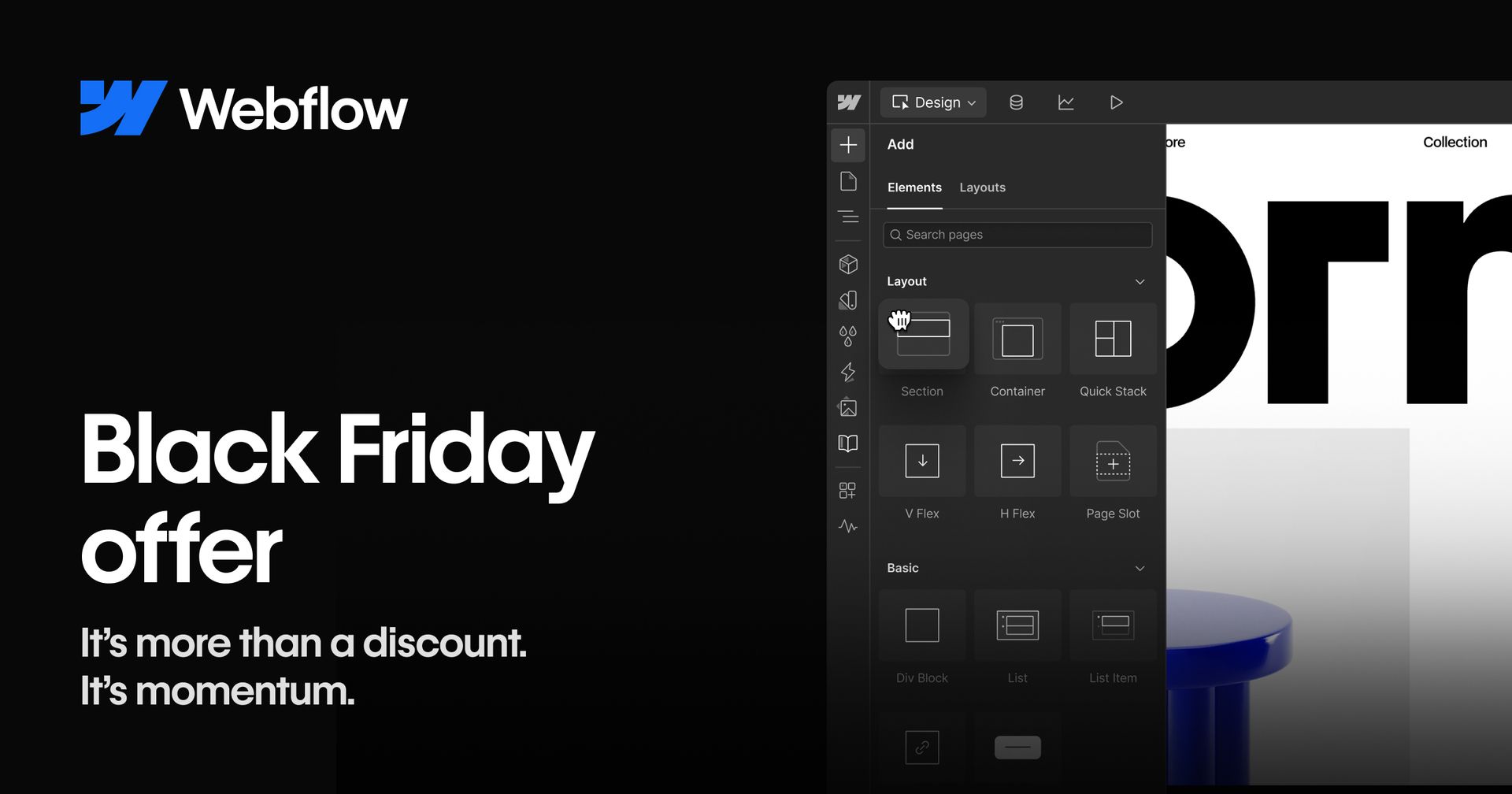 Webflow is the AI-native platform brands trust to create, manage, and optimize web experiences that drive real results. This Black Friday, customers get 12 months for the price of only nine when purchasing a qualifying annual plan. Runs Nov 17–Dec 1. Annual plans only; redeem with a coupon code at checkout. Offer terms apply.