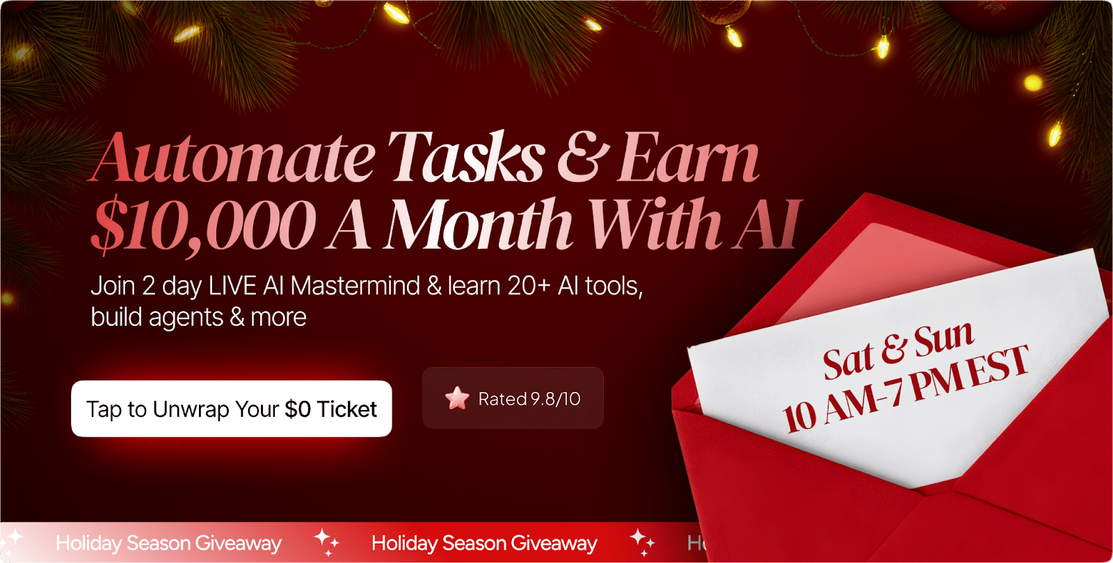 - *Still doing manual tasks repetitively? Join this 2-Day LIVE AI Mastermind by Outskill, an intensive training on AI tools, automations, and agent building so you can learn to automate 50% of your work. Theyâre running their Holiday Season Giveaway and first 100 people get in for absolutely free (it usually costs $395 to attend đŤ¨). Register here for $0 (first 100 people only) đ