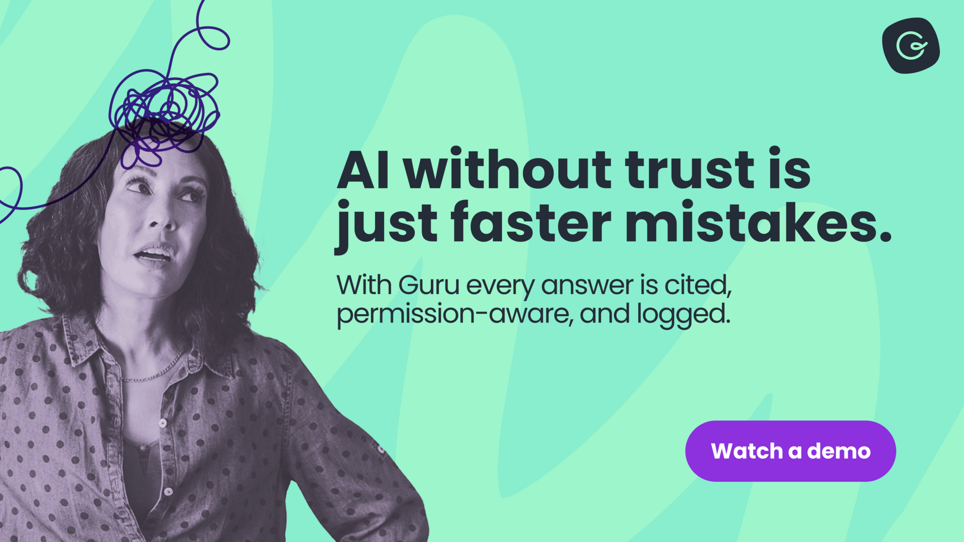 Thatās where Guru comes in. Trusted by thousands of enterprises, Guru is the AI Source of Truth that connects all your data, then delivers cited, permission-aware answers you can trust. No hallucinations. No conflicting docs. Just verified, compliant knowledge everywhere you workāSlack, Teams, browser, and all your AI chat tools and agents. Because in the age of AI, truth isnāt optionalāitās protection.
