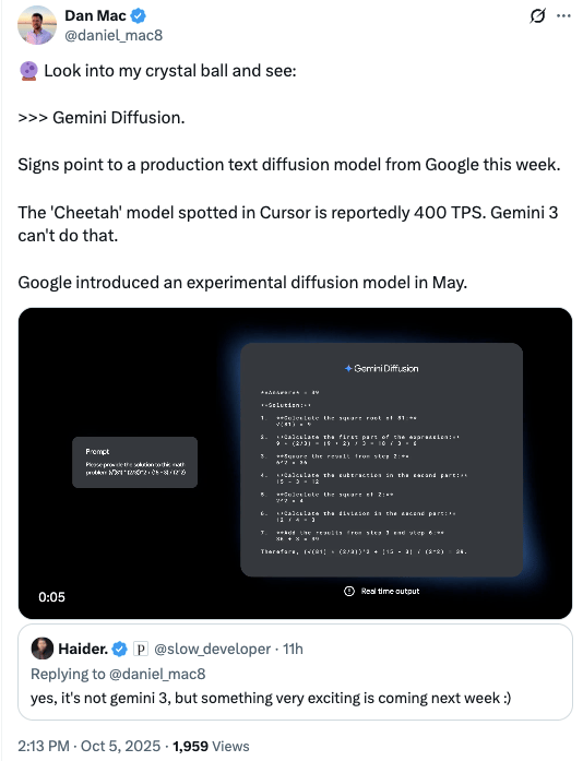 - Dan Mac predicted it's OpenAI's GPT-5-Codex or even possibly a Gemini diffusion model.
