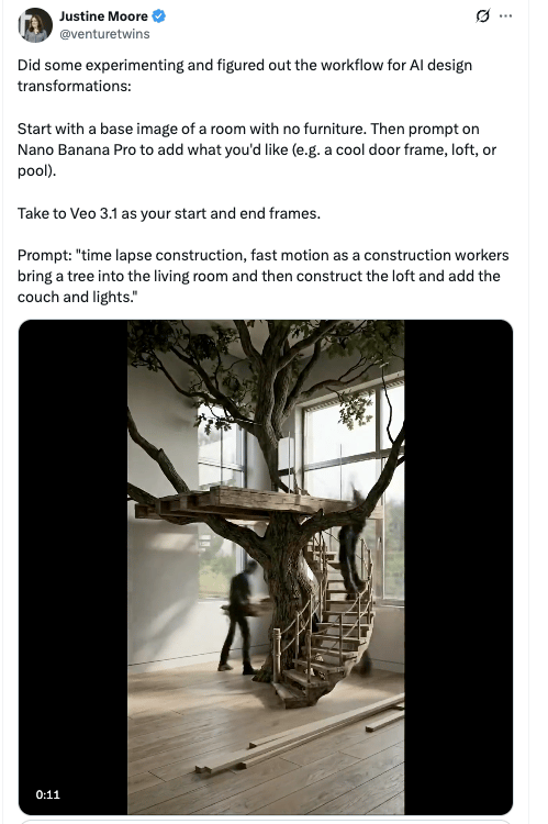 Justine Moore shared the workflow behind those viral AI interior design time-lapses taking over X:
